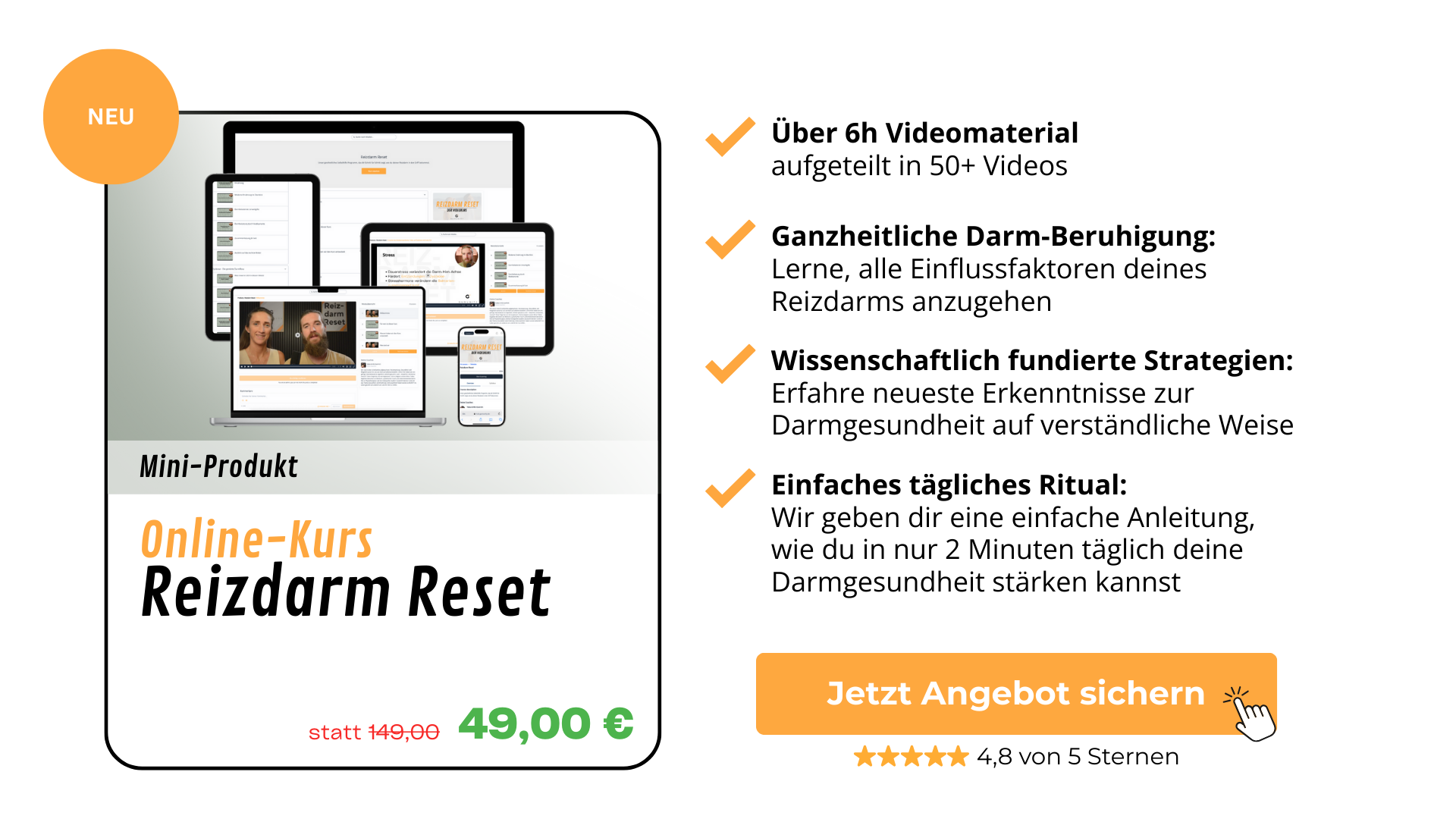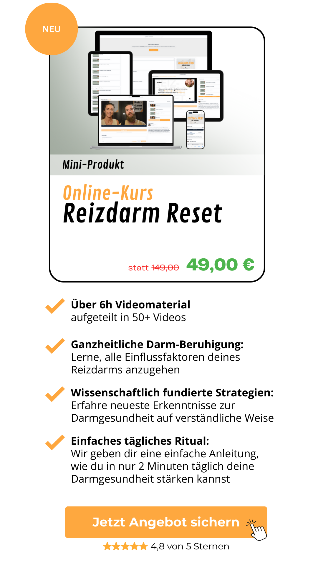Empfehlung: Der Kurs „Reizdarm Reset“ gibt dir einen klaren Fahrplan und hilft dir mit einfachen Methoden wie einem simplen 2 Minuten Darmpflegeritual das Übel an der Wurzel zu packen!